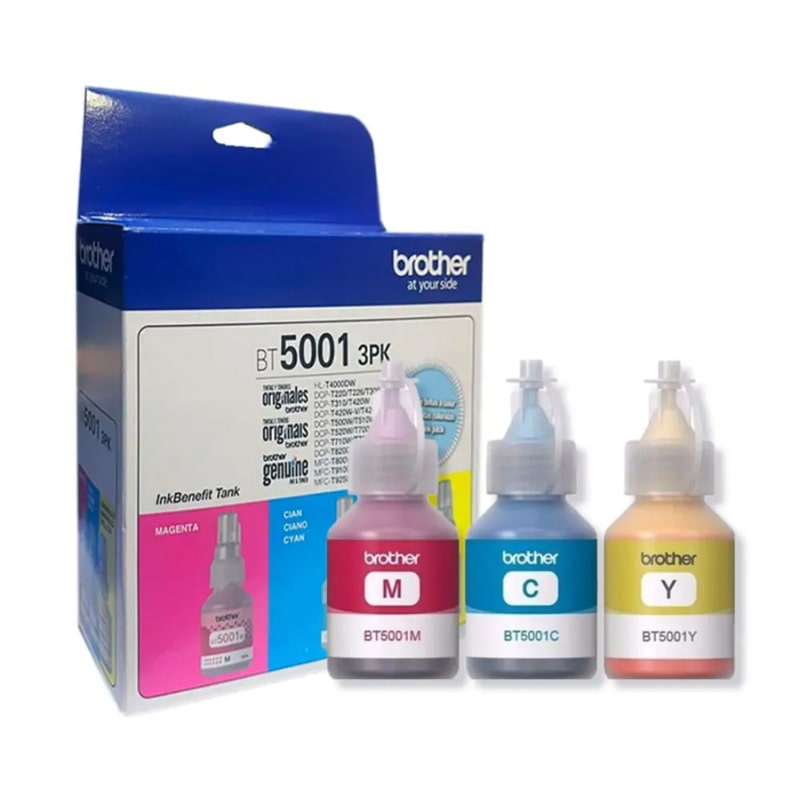 Pack de 3 Tintas Brother BT50013PK en colores cian, magenta y amarillo, para impresoras BROTHER DCP-T300/T500W/T700W/T710W/MFC-T800W